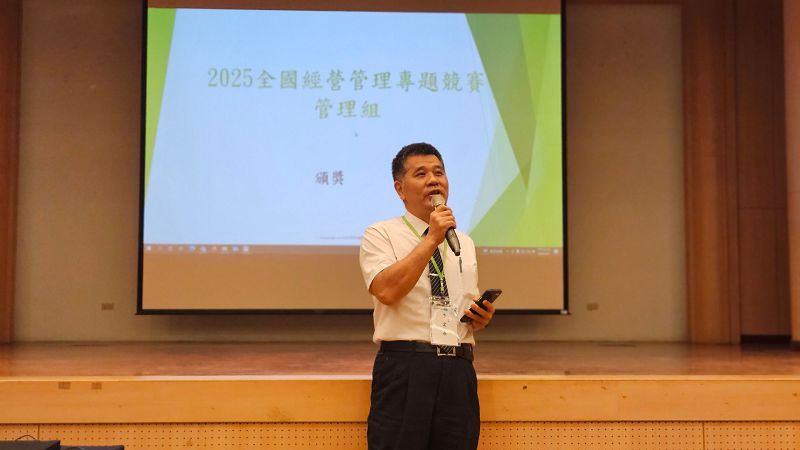 2025全國經營管理專題競賽以「提升學生專題製作能力,展現學習成果,促進產官學交流與實務應用」為宗旨,期望透過學生實作與報告歷程,深化其學術研究能力與邏輯表達能力。每組隊伍需在5分鐘內完成簡報,再接受評審5分鐘的即時提問與互動,形式緊湊且極具挑戰,讓學生在壓力中激發潛能,也讓評審與觀眾一窺其專題之深度與實踐潛力。