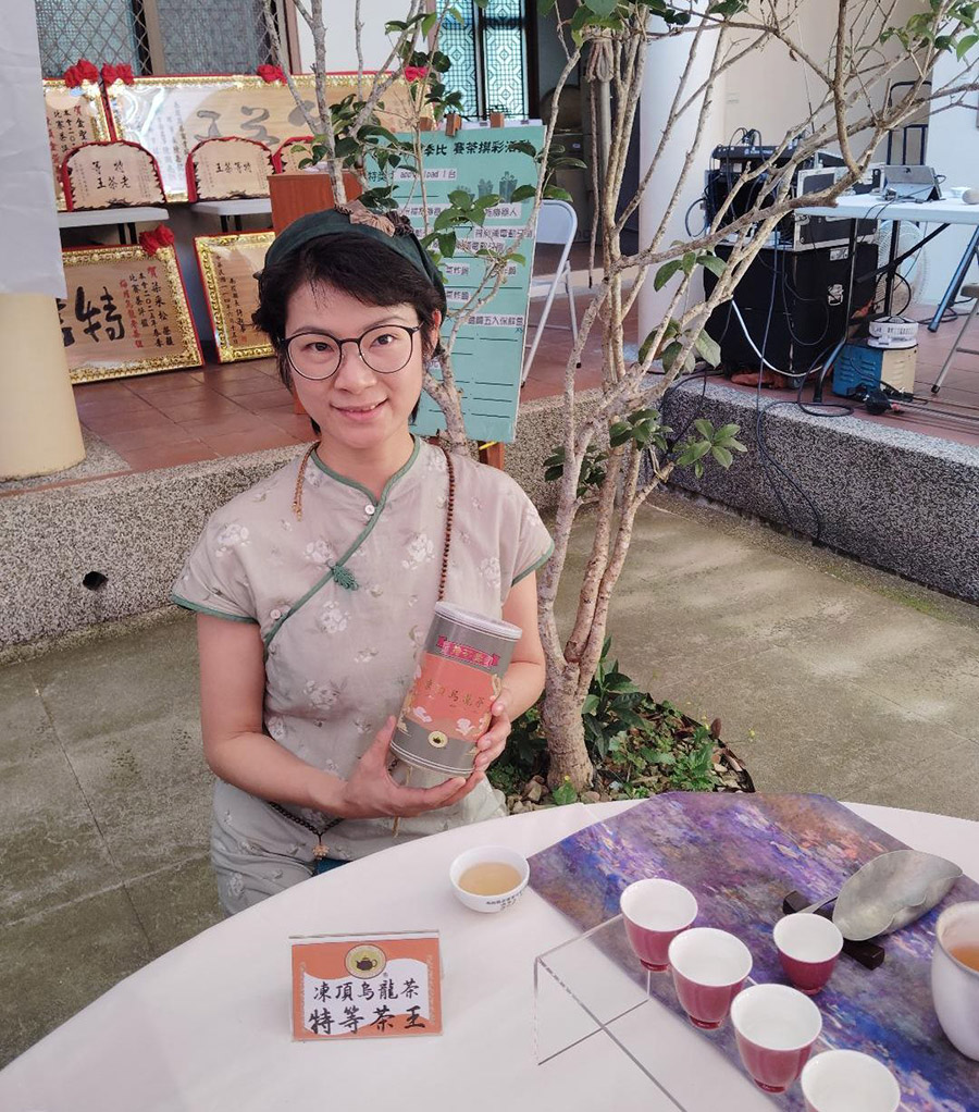 3.凍頂烏龍茶特等獎林麗、特別由大陸返台領獎。(記者陳良安攝)