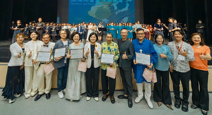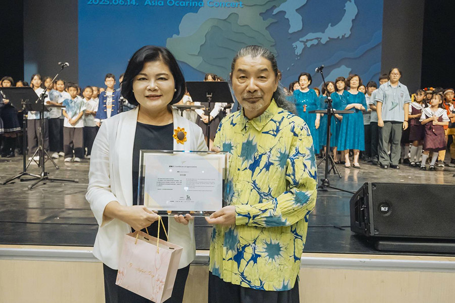 【記者蔡鳳敏雲林報導】雲林縣政府積極推動國際藝文交流,14日下午與晚間分別於雲林表演廳盛大舉辦《亞洲陶笛交流音樂會》與《森韻笛淼遊雲林》兩場高水準陶笛音樂會,邀請享譽全球的日本國寶級陶笛演奏大師宗次郎蒞臨,與亞洲各地陶笛藝術家共同呈現精彩絕倫的音樂饗宴。縣長張麗善、副縣長謝淑亞、處長陳璧君到場聆聽演出,與觀眾一同感受陶笛音樂的魅力。雲林縣政府15日也宣布聘任日本世界級陶笛大師宗次郎擔任「雲林縣文化觀光推廣大使」,這是雲林首度跨界邀請國際音樂大師擔任大使。
