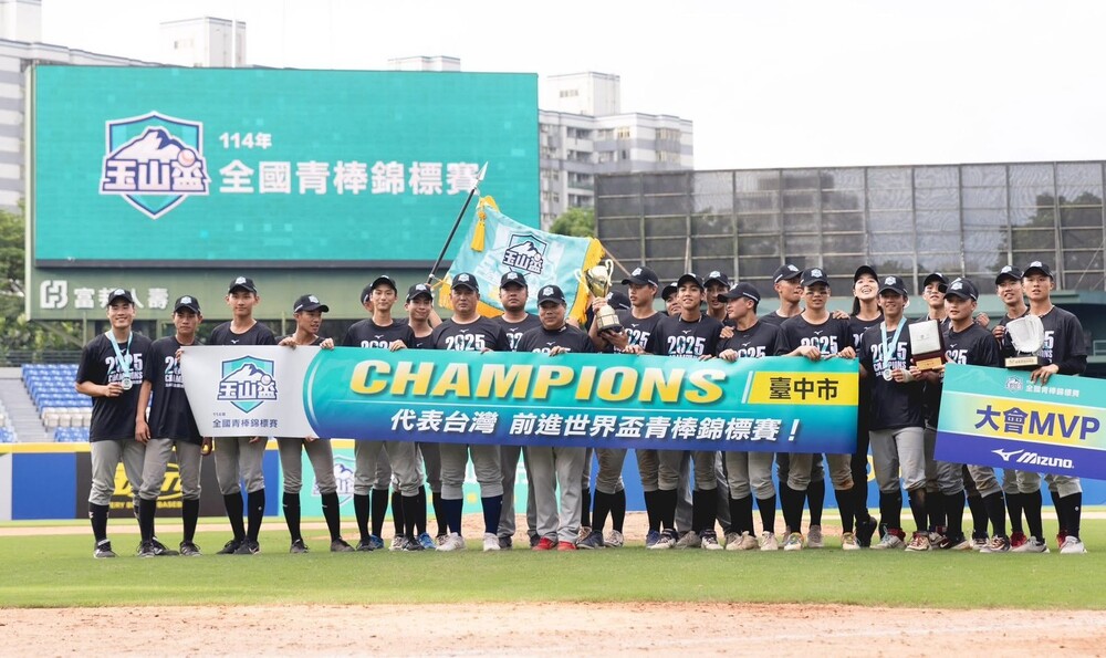 【記者彭勝郎台中報導】台中市青棒代表隊於114年玉山盃全國青棒四強戰以3:2扳倒台東縣代表隊晉級冠軍戰,14日冠軍戰於新北市新莊棒球場對上新北市代表隊,激戰後台中市代表隊以9:6奪得冠軍,這是台中市代表隊繼2010年後睽違15年再次取得冠軍榮耀。
