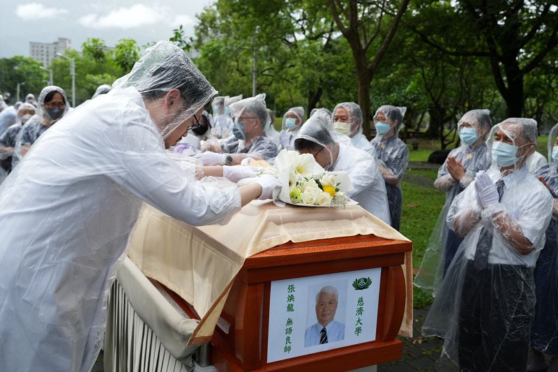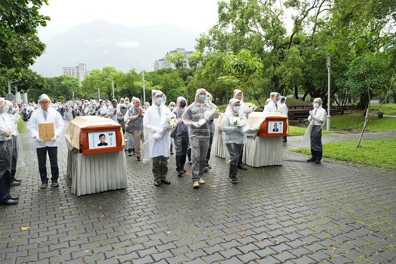 「2025年6月慈濟模擬手術-臺灣脊椎微創內視鏡、亞太脊椎、國防部軍醫局、外傷醫學會聯合課程」,13日舉辦送靈、感恩追思暨入龕典禮。綿綿細雨中,在靜思精舍常住師父引禮下,慈濟大學師長、臺灣脊椎微創內視鏡、亞太脊椎、國防部軍醫局、外傷醫學會的醫師們一起送別無語良師最後一程。八位無語良師是林財旺、王李錦鳳、辜偉文、林阿巫、林明發、黃炳昭、洪素茹、張煥龍。