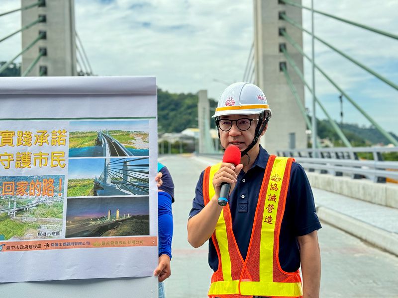 台中市政府建設局陳大田局長指出,台中市政府斥資10億元改建東勢埤豐橋,新橋以脊背橋形式,採大跨距鋼橋橫越車籠埔斷層及大甲溪,大幅提升橋梁安全,目前整體工程預定進度83.27%、實際進度95.45%,將提早4個月完工,力拚114年8月底通車。此外,也特別規劃在橋梁增設人行道、設置觀景平台,提供觀光遊憩使用。