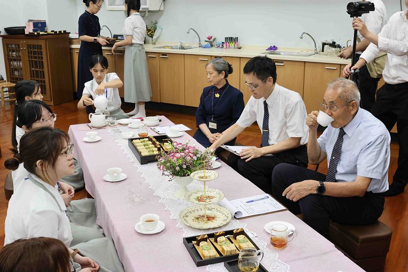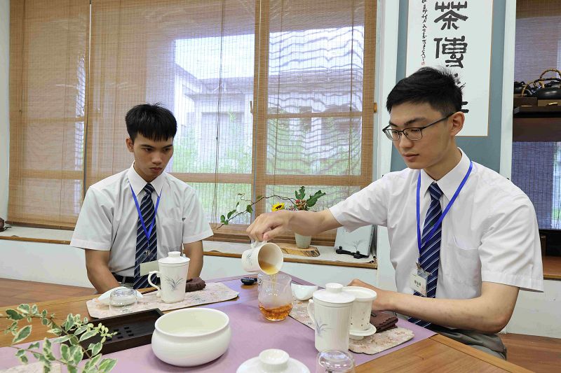 醫學檢驗生物技術學系二年級學生王綵瑄笑說,冰涼的手搖飲隨處可買,怎可能花費時間來泡壺熱茶呢?沒想到,從閉眼靜心來調息呼吸,到學習沖泡各種茶葉,細細品嚐箇中滋味,讓煩躁的心瞬間沈靜下來,更從繁瑣的禮節儀式中,去思考背後的精神和內涵,甚至整整二小時都沒想要滑手機,非常難得。