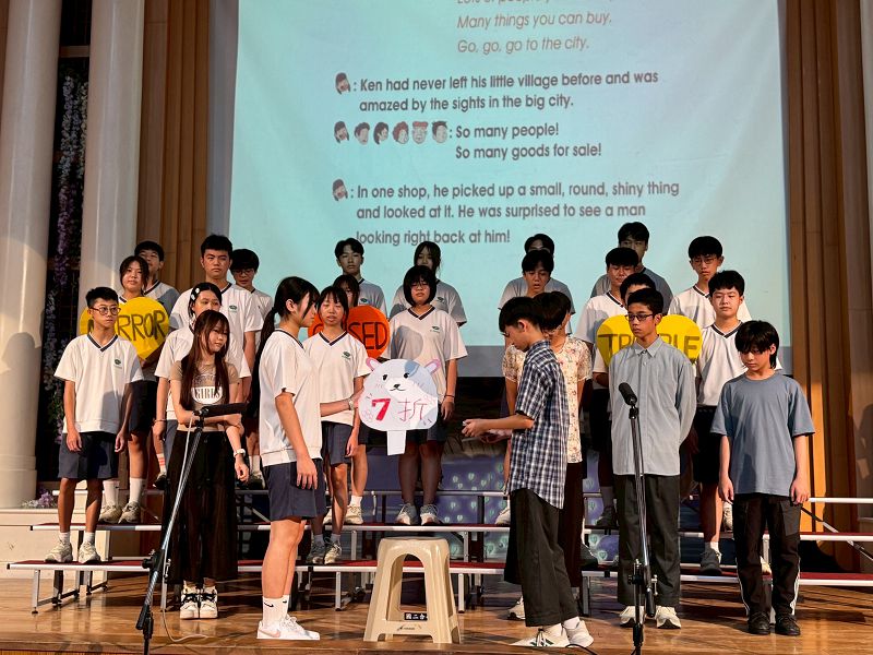 本次讀劇比賽不僅讓學生有機會站上舞台自信展現,更深化了英語語感、口說表達與團隊合作的經驗。國二合心班董同學表示:「在大家背不起來時,導師與老師們都在為我們加油,也說了,即使沒有第一名也沒有關係,重要的是在比賽中大家的精神與堅持到底,盡力就好。」國二知足班黃同學表示:「我最印象深刻的是,大家從一開始的背不起來,到大家可以整齊的背出來,是全班一同付出的努力!」國二感恩班尤同學分享:「大家從原本的很小聲,慢慢練習,雖然不是最好的,但班上的默契變好了。」