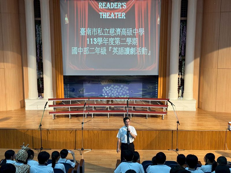 盛夏的6月13日上午,臺南慈中國中部二年級全體同學滿心期待的讀劇比賽登場了,同學們如同太陽般的活力四射,經過數週用心的練習,卯足全力展現多元且活潑的英語學習力。