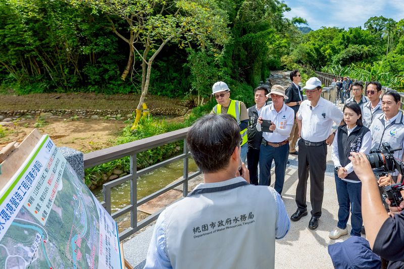 張善政指出,大溪區草嶺溪水環境營造工程不僅優化排水系統與河道生態環境,也融入當地文化與景觀資源,透過頭寮步道串聯兩蔣文化園區、經國紀念館與後慈湖等歷史景點,打造遊客踏青、探索人文與自然的重要路徑。