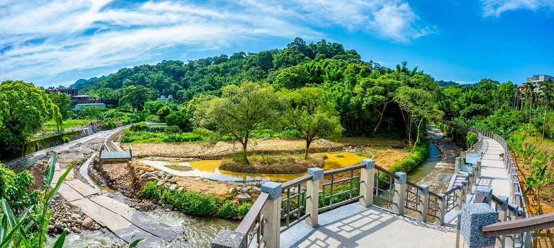 水務局說明,該工程採取自然導向設計理念,聚焦於防洪安全、生態景觀及環境教育三大核心,自下游親水空間營造、中游棲地改善至上游濱溪灘地恢復,推動生態系統與景觀整體融合與提升。此外,工程也融入在地歷史文化資源,如三層圳灌溉系統與洗衫坑遺址,並與風景區管理處合作設置導覽解說牌,串連自然景觀與人文脈絡,打造兼具自然保育、觀光發展、文化詮釋與教育推廣的多功能空間。