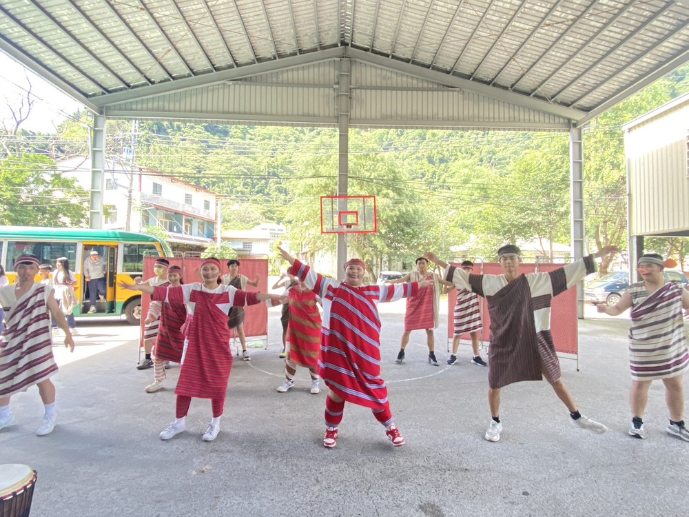 表演首先是七年級全體10位學生以口簧琴吹奏山林之音,傳遞部落自然與心靈的和諧共鳴。隨後八年級13名學生演出自創歌舞劇《泰雅文面與Gaga》,以戲劇結合舞蹈與族語,詮釋泰雅族文面儀式背後的文化意涵,彰顯世代傳承與道德規範,展現文化課程陶冶道德品格,與文化創意整合的多元成效。