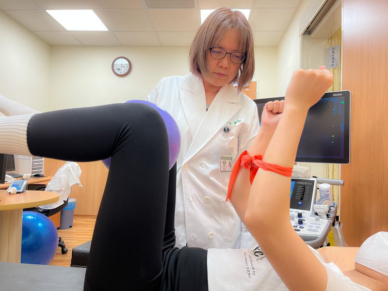 除生理回饋,骨盆底肌緊繃部份,林智佳再實施內診徒手治療,協助放鬆骨盆底的肌筋膜,恢復肌肉協調與彈性。林醫師表示,強化骨盆底肌收縮力,也要有良好的彈性,搭配橫膈膜、腹肌等核心肌群協調,能改善漏尿與骨盆下墜的不適感,病人下肢肌力一併訓練,更可提升身體平衡與穩定度。
