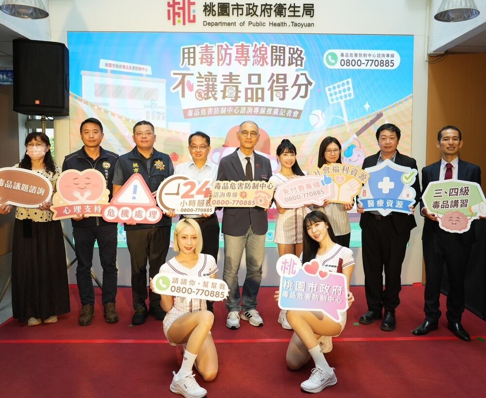 【記者吳艾芸桃園報導】為提升民眾對毒品危害的警覺與認知,並鼓勵有需要的民眾主動尋求協助,桃園市府衛生局於日前舉辦「用毒防專線開路—不讓毒品得分!」記者會,推廣毒品危害防制中心24小時免費諮詢專線(0800-770-885)。