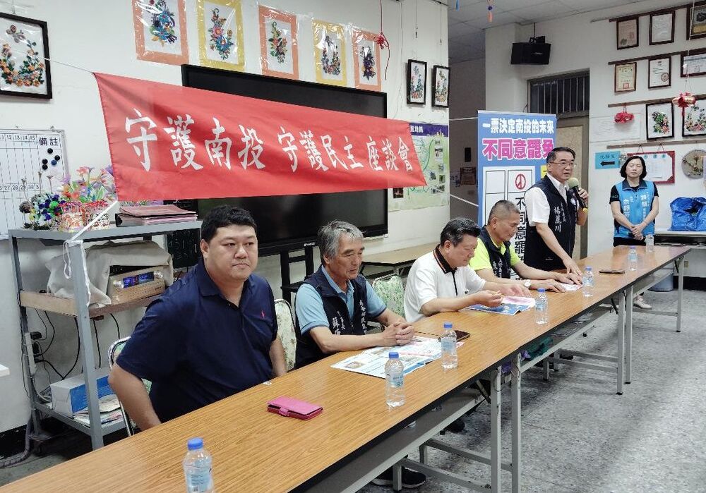 【記者陳良安鹿谷報導】守護南投,守護民主,反罷免村里座談會在鹿谷鄉清水村活動中心舉行,大家不畏風雨一起守護南投家園、 感謝鄉親的疼惜。村里座談會由縣黨部楊麗川主委召集,大家不畏風雨到場參與,二村長及村鄰長,社區理事長及幹部50多人進場,發言熱鬧踴躍。