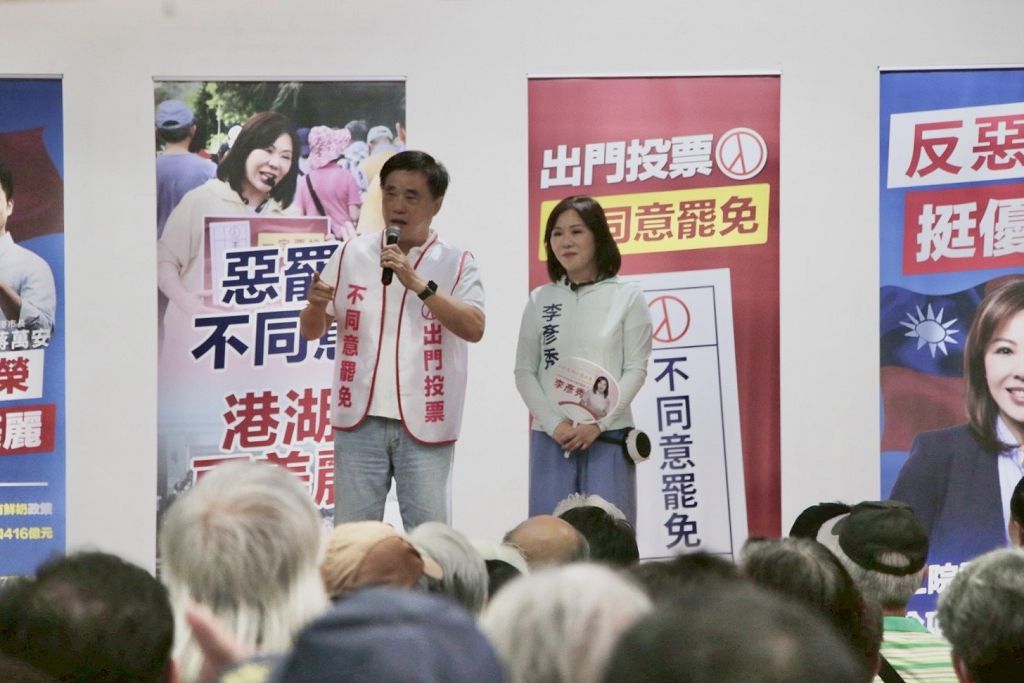 【記者陳良安綜合報導】大罷免進入第3階段,中選會委員會議審定後公告,包含國民黨立委李彥秀在內,共有24位國民黨立委罷免案成案,預計7月26日投開票。李彥秀21日在台北市南港區舉辦「反惡罷、戰獨裁」政策說明會,包含朱立倫、國民黨秘書長黃健庭、前台北市長郝龍斌等人均到場助講、力挺。