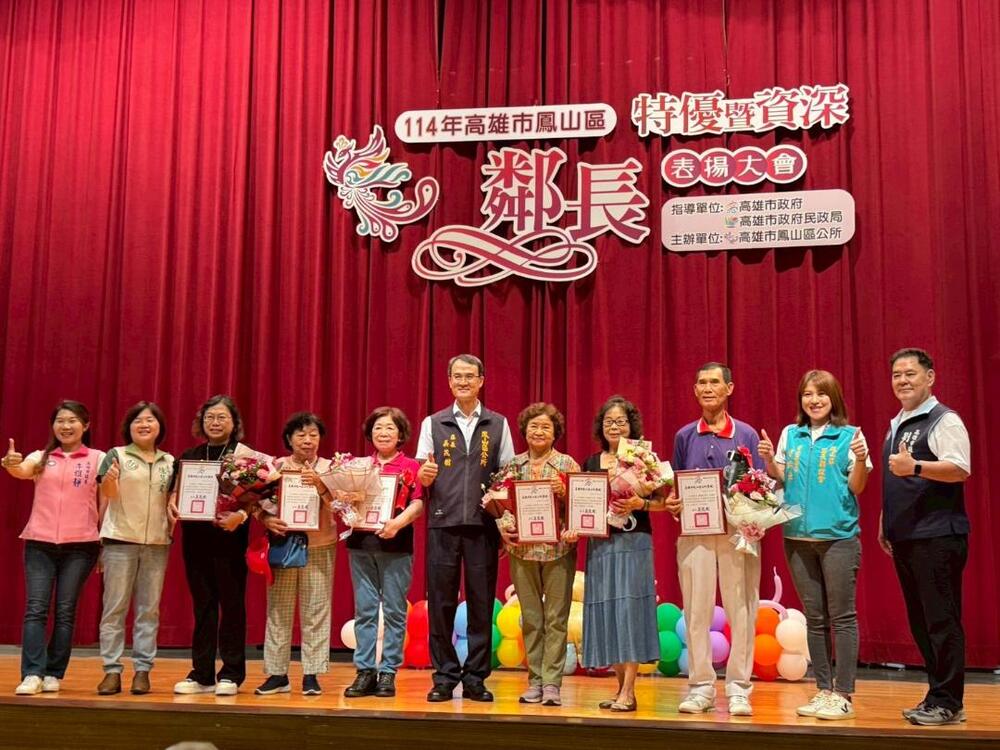 【記者于欽智高雄報導】高雄市鳳山區公所為感謝鄰長們平日協助推動里政事務,特在6樓大禮堂舉行「114年特優暨資深鄰長表揚大會」,計有420位特優鄰長及資深鄰長接受表揚,由區長吳茂樹頒發獎狀,代表陳其邁市長與民政局長閻青智感念他們的辛勞。