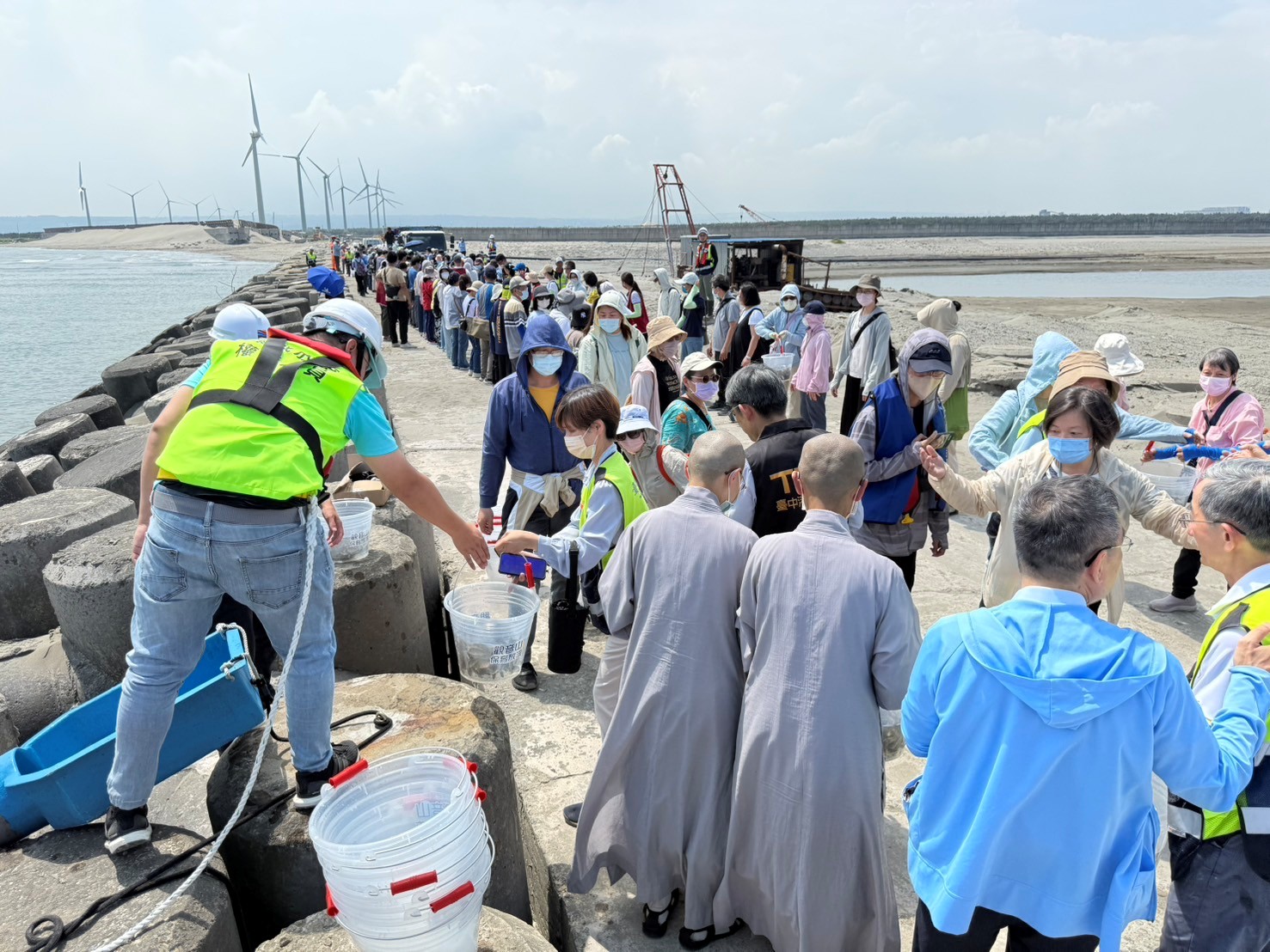 林春福總經理強調,台中港的保育放流是一場「深度生態保育放流」,不僅在「環境面」上積極海洋復育,在「社會面」上也努力消除民眾對放生的錯誤方式與認知,結合科學、宗教多元力量,以實際行動辦理保育放流,從根本守護海洋命脈,此次活動並有臺灣商港港群及臺灣港務港勤股份有限公司的伙伴一起共襄盛舉,希望在海洋復育的路上,更多企業能展現責任與行動,成為守護海洋生態的那道最堅強、最關鍵的力量。