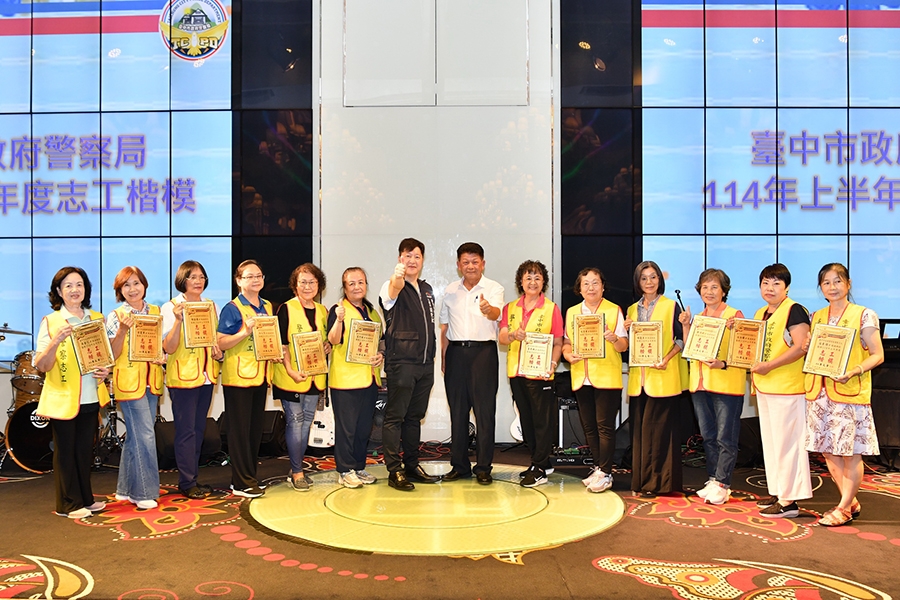 為表彰長期投入警政服務工作的優秀警察志工,中市警局在廿五日於林酒店舉行「上半年度警察績優志工表揚大會」,會中表揚一百十四位服務績優、表現傑出的臺中市志工楷模,志工伙伴無怨無悔用心付出,獲獎實至名歸;局長李文章指出,警察志工是警政工作的堅強後盾,無論是協助反詐騙、防竊宣導等犯罪預防宣導及交通安全教育宣導等任務,每每可見志工伙伴活躍身影,正因有志工默默付出,警察有效維護市民財產安全,更讓臺中市有個井然守序的生活環境。(圖文:台中記者許順德)