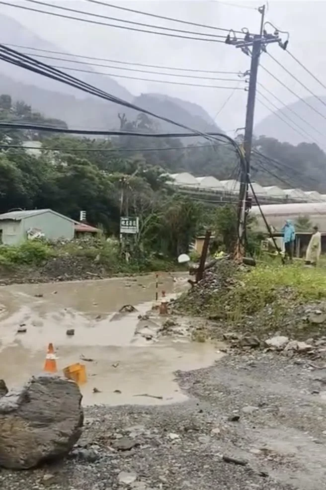 圖1.2:東埔溫泉聯外道4.3公里處,27日傍晚爆發土石流,民眾一度受困。