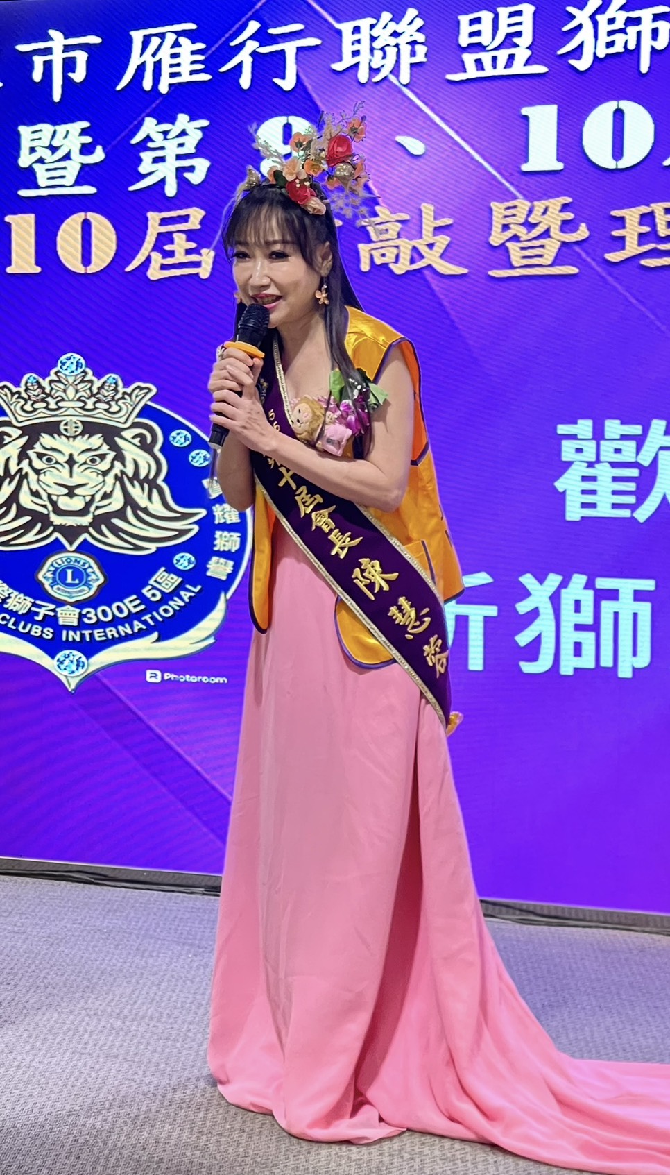 新任會長陳慧蓉典禮致詞中指出雖上無數表演舞台,但這次真的被感動到心情感受特別不一樣,更感謝在場全體獅友的祝福以及24、25會長聯誼會一年來的照顧及指導下,希望透過公益社服活動吸取經驗及爭取學習機會去達成各項指標了解社會需求。