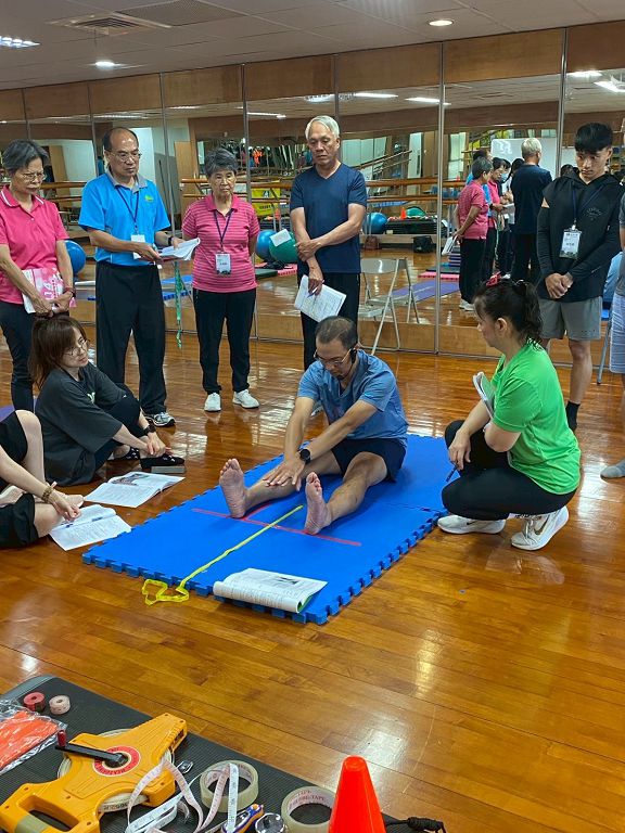 本次檢定場地設於慈濟大學,共有17位考生報名成功。考場明亮整潔、舒適涼爽,讓考生能在舒適的環境中穩定發揮。考試內容分為兩部分:上午的學科測驗涵蓋運動生理學、人類發展與老化、病理生理與危險因子、運動處方設計、營養與體重管理,以及緊急應變與安全處理;術科實作則包括柔軟度檢測、肌力訓練與動作修正、團體領導能力展現。