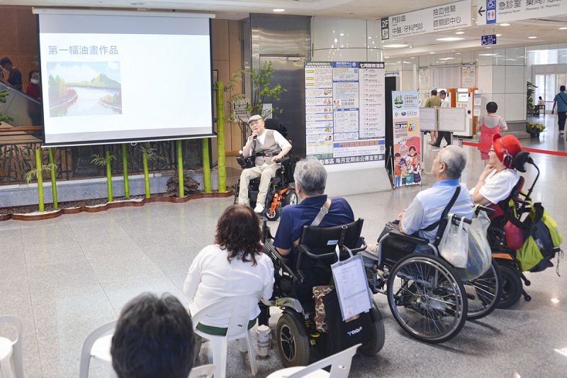 06月28日,台北慈濟醫院、慈濟北區脊髓損傷醫療重建中心與國紹泌尿科學教育基金會合作舉辦聯合門診暨「脊光閃耀的色彩-畫裡有光,歲月靜好」畫展開幕活動,邀請基隆脊髓損傷傷者協會王金財理事長、四位傷友畫家蒞臨,期待透過人文分享及聯合義診,提供脊髓損傷傷友完善醫療協助與身心關懷。