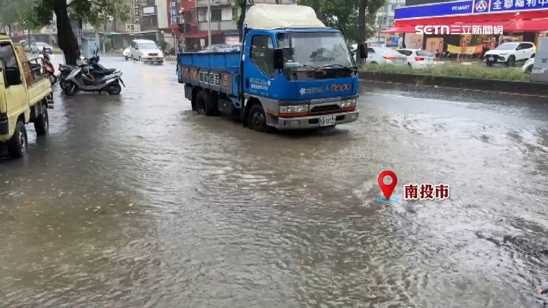 汽機車開過低漥路段立刻濺起大水花,水淹超過半個輪胎高,南投市突如其來一場大雨導致嘉和路一段與彰南路水淹成災。民眾:「我沒有相關的避雨工具,所以我們就只能躲在這裡等雨小一點。」民眾:「暴雨吧,剛剛那種情況才會(積水)。」