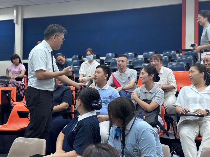 本次行程涵蓋培華中學、華仁中學共四場次的學生營隊、教師專業增能工作坊與專題講座,吸引逾300位當地教師熱情參與。課程內容聚焦於AI科技在教學現場的應用、數位工具於班級經營的實務操作,以及教師與學生情感連結與互動技巧的提升。葉宜宣老師更將慈濟人文教育核心價值融入教學,帶領教師實作演練,掌握新時代班級經營的關鍵能力。