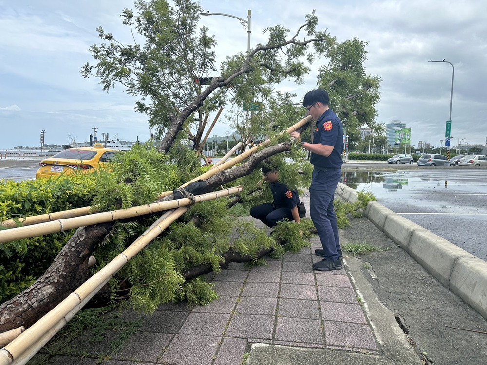 苓雅分局成功路派出所巡邏警組於7月7日上午巡經海邊路與苓南前路口,發現有路樹倒塌,為避免民眾往來危險,立即將倒塌路樹移至路邊,並通報相關單位安排載離。丹娜絲颱風過境,造成部分路樹傾倒影響交通,苓雅分局除第一時間派員管制,配合市府各單位迅速排除確保路況順暢外,亦於轄區內加強巡視有無鐵皮、廣告招牌、雜物倒塌等可能影響民眾往來安全之交通路障,並通報相關單位協助排除,且先行設置警戒線、交通錐提醒民眾留心注意。苓雅警分局呼籲,颱風甫過境,民眾災後重建工作亦須注意己身安全,若遇有大型路樹、障礙物等無法輕易排除之阻礙,得向各工務主管機關請求協助,避免在重建過程中發生意外導致受傷。(圖文:記者張福全)