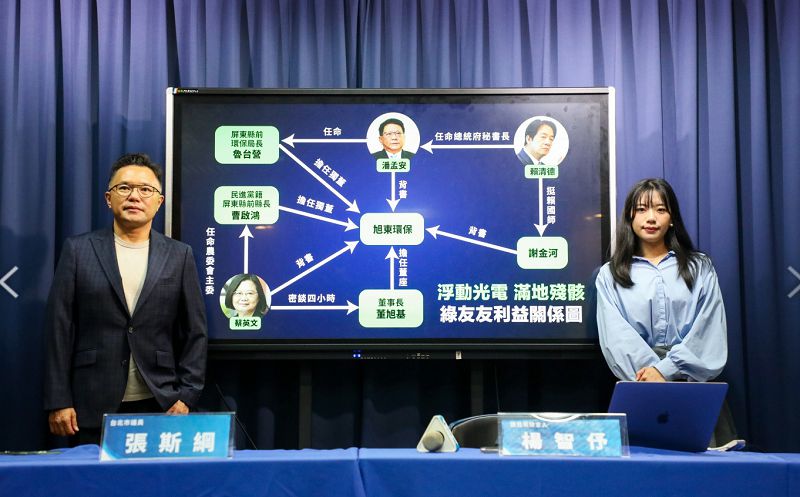 張斯綱強調,民進黨的經濟國師謝金河在2024年11月還稱「浮動光電才是未來」,盛讚旭東環保公司董事長董基旭發展海岸光電板,也幫民進黨的能源政策背書,背後的利益結構關係令人質疑。這些曾受政府補助的海上光電板未來會不會成為臺灣海域的災難?甚至禍延子孫,經濟部與環境部都不能再迴避問題。