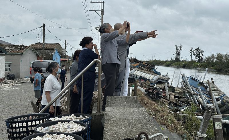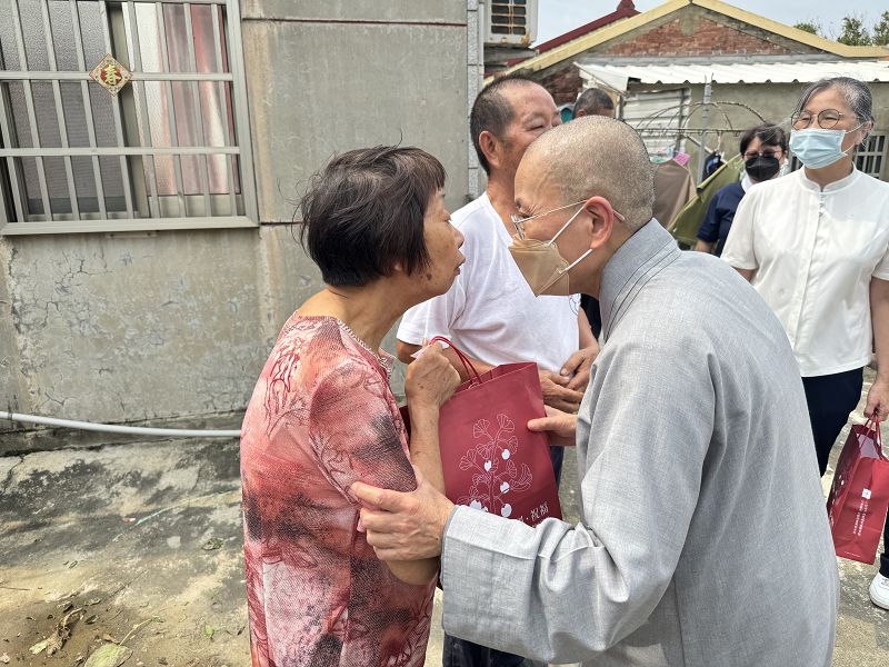 巡視七股區頂山里時,慈濟志工來到一戶風災受創的住家,九十八歲的老奶奶坐在門口,滿臉倦容,當她看到德懷師父走近關懷,彷彿瞬間找到了依靠,壓抑多日的委屈與不安終於有了出口,眼淚忍不住潰堤而下。德懷師父說:「不要擔心!慈濟人還會再來。」走進受損嚴重的社區,彎身關懷、雙手合十,為鄉親送上最溫柔的打氣。那不是短暫的慰問,而是陪伴與承諾。