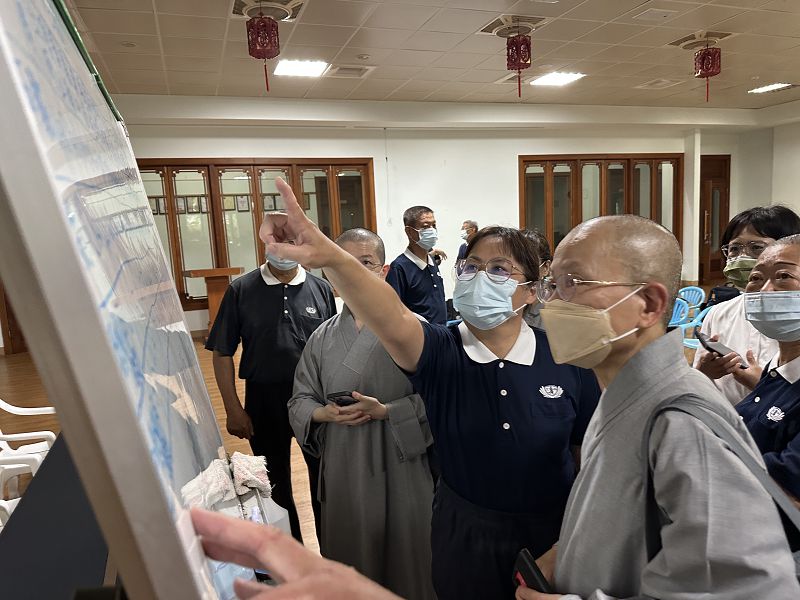勘察過程也隨時構思聯絡處未來的規劃,基金會營建處同仁也隨行,再評估整體修復。經過實地勘察,包括環保站、關懷當區法親受災狀況,了解共修處受損的狀況後,回去再跟證嚴上人討論協商,期盼盡快完成讓社區志工安心,慈善工作推動不受影響為首要考量。