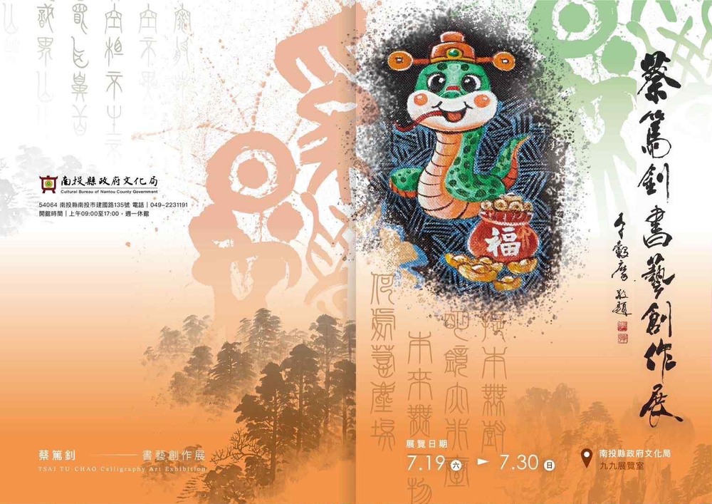 就因蔡篤釗的書法造詣獲得書法界肯定,而且他的知名度也享譽兩岸,因此他向南投縣文化局提出申請個展,立刻獲得邀請到南投縣展出,這項「書藝創作展」,將於7月19 至30日在南投縣文化局(九九展覽室)展出,並於19 日下午2時30分舉行開幕儀式。