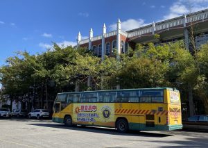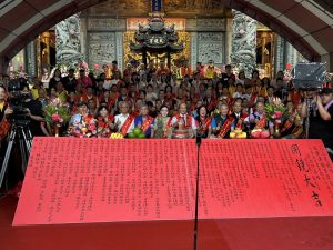 南鯤鯓代天府總幹事侯賢名親自接待,並匯報山門大牌樓被颱風侵襲現況及地方受損的嚴重災情,期能同心協力、安然度過風災考驗。侯賢名強調祈願王爺庇佑大家平安、健康、諸事順利。