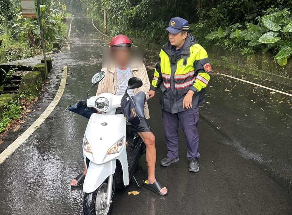 員警見狀並請其搭乘巡邏車返回派出所稍作休息,機車則由員警協助騎乘下山,起初長者擔憂他全身濕坐上車會把車弄髒給員警添麻煩,且顧及員警替他騎車淋雨而不願上車;竹山分局秀峰所所長張闊利立即脫下雨衣披在長者身上給他保暖,警員吳鴻章則跟長者說自己有穿雨衣不用擔心,老翁才安心坐上巡邏車回派出所等待家屬接回,長者女兒對員警即時救援、守護家人表達萬分感謝。