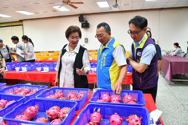 【記者鄭惠珠二林報導】夏天是百果爭豔的季節,彰化引以為傲的「二林三果」-紅龍果、巨峰葡萄及豐水梨也開始進入盛產期,為推廣「彰化優鮮」在地農特產品,進一步提升縣內紅龍果品質及市場競爭力,彰化縣政府與二林鎮農會11日於二林鎮農會舉辦114年度「彰化縣優質紅龍果評鑑活動」,彰化縣長王惠美與會。