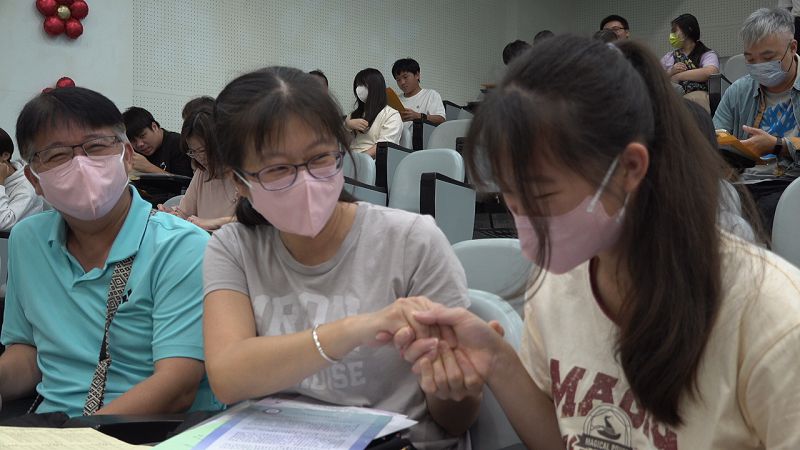 報到現場氣氛溫馨及未來的希望,許多家長全程陪伴,臉上洋溢著對未來的期待與祝福。校方特別安排一段靜心活動,邀請高一新生與家長閉上眼睛,共同思索三年後、十年後的自己,希望他們描繪出理想中的成長藍圖與人生方向。這樣的儀式感,不僅拉近了親子關係,也凝聚了家庭與學校共同育才的信念。