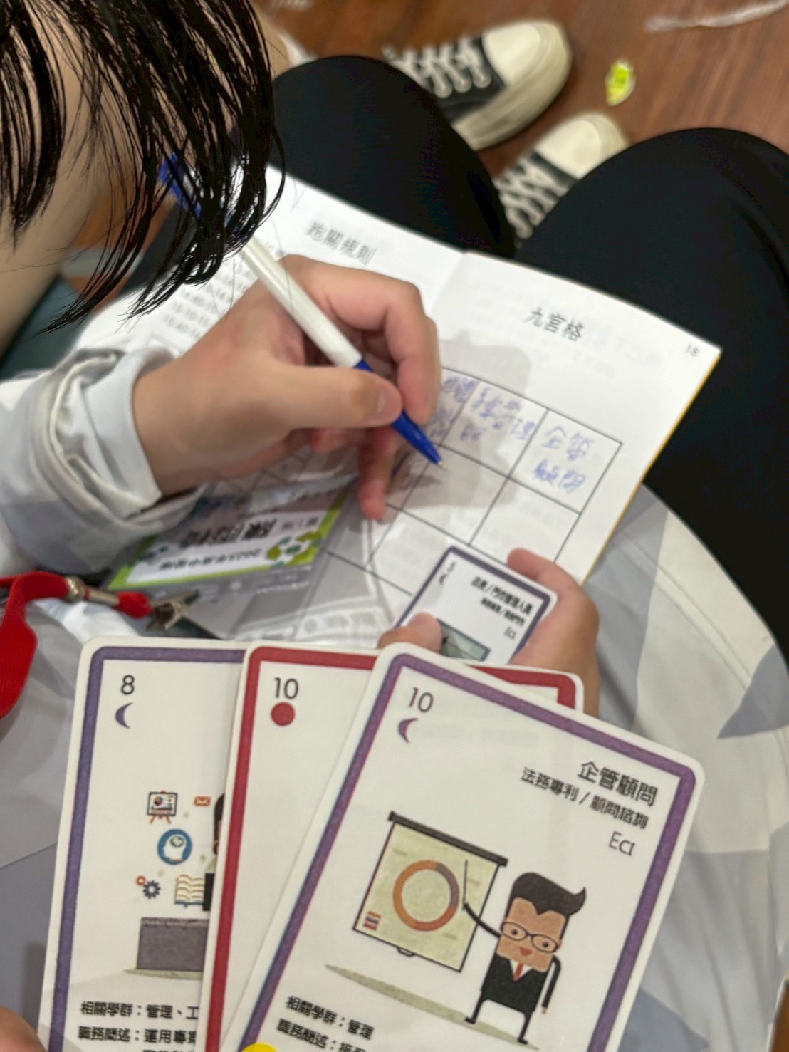 活動首日,從充滿歡笑與破冰遊戲的相見歡開始,在團體氛圍逐漸凝聚之際,迎來重頭戲「職來職往」主題闖關挑戰,將學生們分為六個小隊,輪番挑戰五大職涯體驗關卡,透過關主的引導與實作,從遊戲中認識不同的行業與職能。在關主們巧思設計下,學生們在草地上學做餐飲業忙碌、模擬社會服務者、體驗服務業現場挑戰、電商業經營,甚至藉由角色扮演探索內心的「我可以」,高中生們在一場場的挑戰中,玩中學、做中思考,點燃對未來職涯的想像與探索熱情,對職業世界也有了更具體的認識。