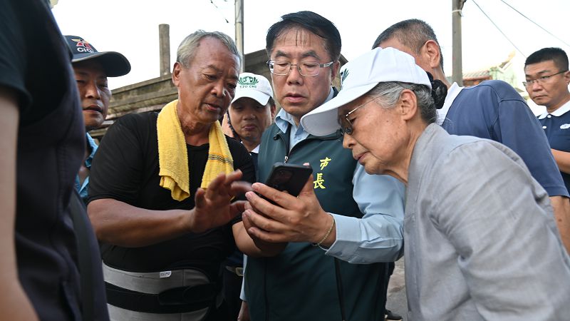 當天下午,台南市長黃偉哲親率市府團隊會見林碧玉副總,雙方迅速達成合作共識,隨即驅車前往災情嚴重的西寮里,勘察現場並傾聽民情。