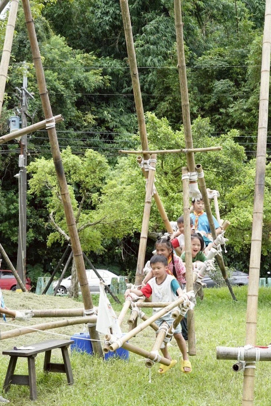 這場以「公園野孩子」為主題的快閃活動,邀孩子們用各種「玩」的姿態探索公園每個角落,不僅與在地資源結合,也安排了一連串的挑戰關卡,從童軍獨木橋、足球挑戰、跑酷體驗、軟兵器格鬥、水遊戲、菜籃小火車,到大自然尋寶等多樣化活動,讓孩子們在闖關體驗中勇於冒險、學習成長。
