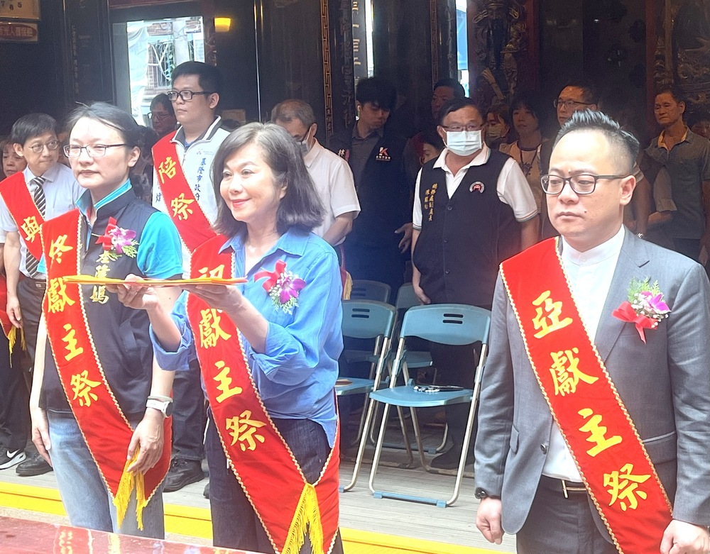 漳州媽祖安座紀念三獻禮,由副市長邱佩琳代表謝國樑市長,童子瑋議長代表童永主委,爐主廖上萱先後主祭。府會首長,民代,各界代表,慶安宮全體顧問,委員,媽祖會員與祭,消災祈福,發揚媽祖慈悲精神,救苦救難,社會和諧,而能風調雨順,國泰民安。
