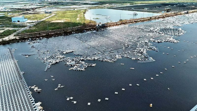 另外,在屏東受丹娜絲打散的太陽光電系統浮台設施,大量黑色結構體遍布佳冬岸際。彭啓明提到,根據回報,業者13日已完成清除,會再進行確認。