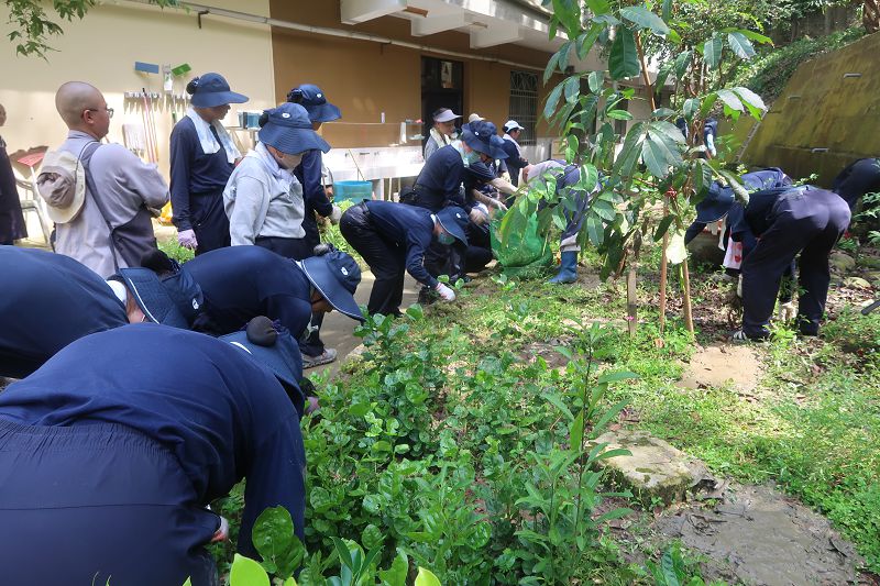 「只要是你們拔得起來的,都是雜草?」自諗法師笑笑回應,讓志工覺得好窩心,師父好慈悲。師父卻謙虛地說,是志工們的慈悲,並合十感謝大家來幫忙。