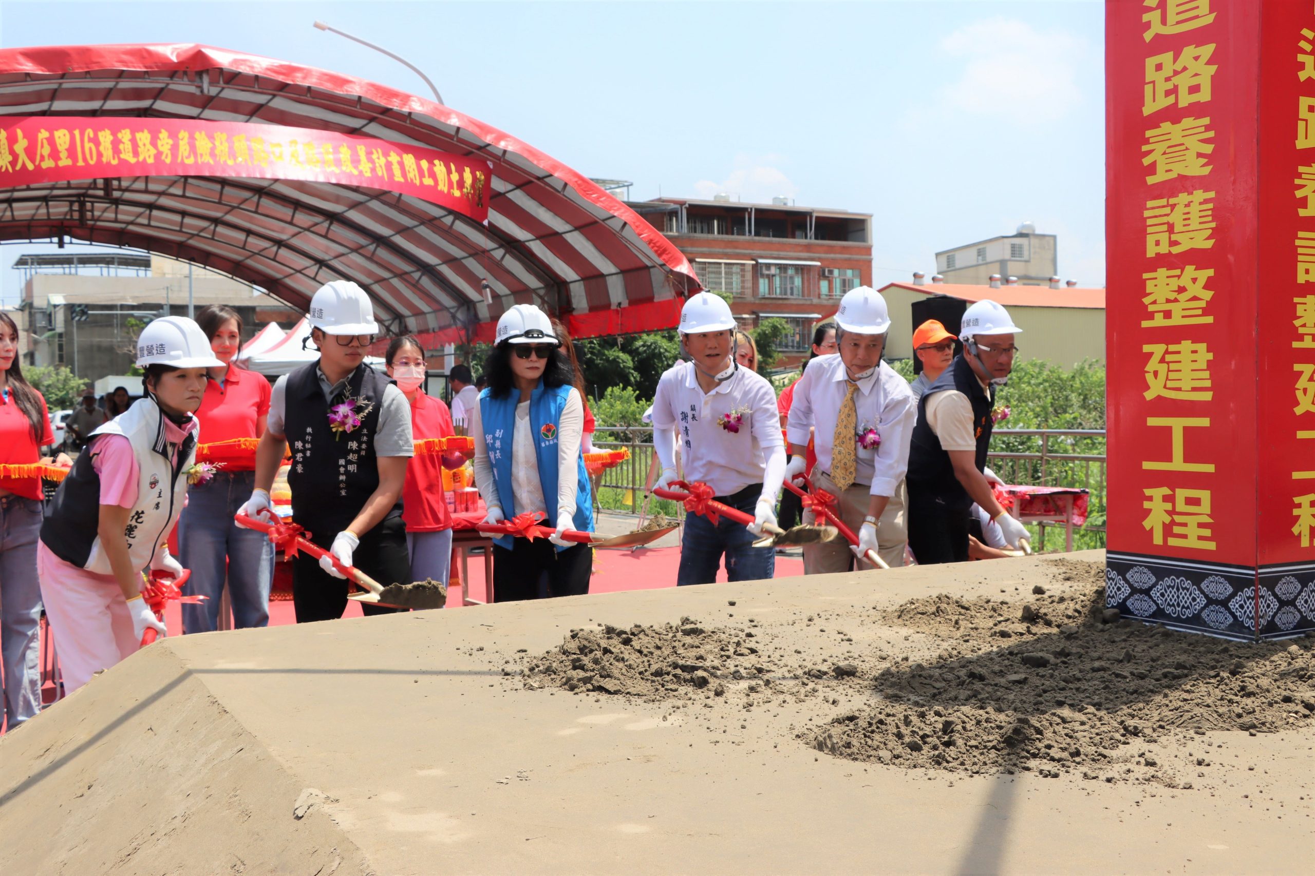 【記者林盈焜、羅玉女苗栗報導】苗栗縣後龍鎮大庄里十六號道路旁危險瓶頸路口及路段改善工程,17日上午開工動土,預計一一四年底或一一五年初完工通車,將可串聯十六號與二十號都市計畫道路,建立完整路網,提供居民便利交通。