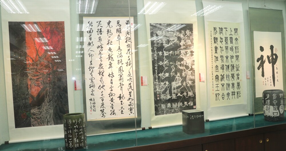 黃傳恩表示,桃園市書法學會成立於民國75年,至今已邁入第40個年頭,參展作品有書法、水墨畫、彩墨畫、岩礦陶藝、竹雕、手繪陶瓷日用品系列等百餘件精品佳作。會員多在書法上有多年的書寫經驗,書體更從甲骨文、篆、隸、草、行、楷等各有其專長,且在每年定期舉辦的聯展作品一年比一年精彩。今年聯展以『墨韻傳薪』為主題,是會員們共同參與的聯展活動,展出創作涵蓋書法、水墨與陶藝等類型,作品非常精湛豐富,每件都是會員們藉由彼比筆墨抒懷創作、交流分享經驗傳授以達相互成就效果的聯展活動,呈現學會朝向多元書畫創作風格發展的成果,展現傳統藝術形式與現代創作的結合。