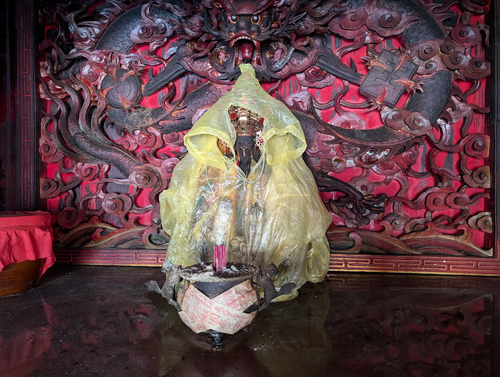 【記者黃永豐台南報導】台南市學甲區頂洲部落的信仰中心─福安宮,歷經百年風雨,長年庇佑地方安寧,然而,受「丹娜絲」颱風侵襲,強風豪雨將廟宇屋頂掀開,整座廟體幾近全毀,信眾心碎。廣澤尊王、李府千歲等諸神尊被緊急迎請至活動中心與信徒家中暫時安奉,鎮殿李府千歲神尊披上雨衣遮風避雨,場面令人動容。