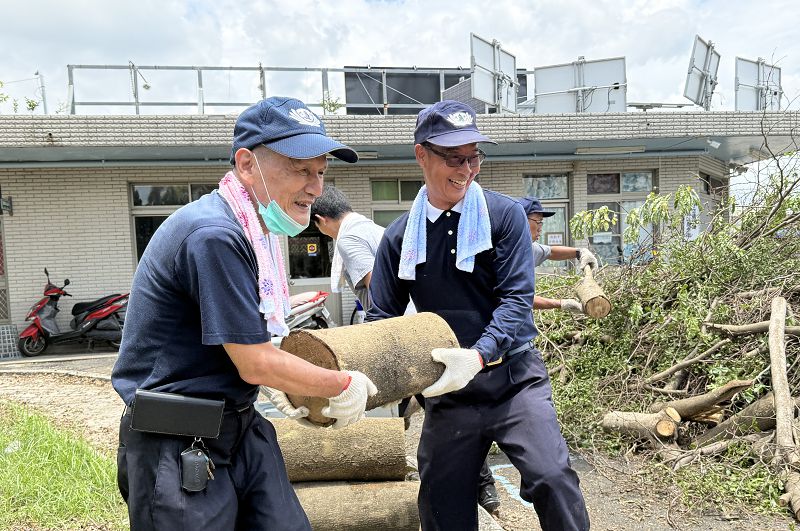 為了趕緊將環境清理,人人不喊累,稍事休息立即又投入。隨時補位的接力,形成不斷電續力強大的隊伍。