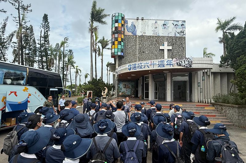 7月16日上午七點半,四十二位志工搭乘一部遊覽車,從彰化靜思堂出發,南下嘉義市東區的天主教輔仁中學,協助清理斷枝倒樹。讓校園早日恢復良好的環境。