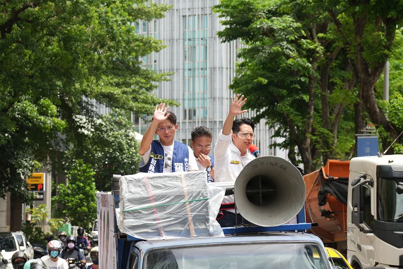 台灣民眾黨主席黃國昌在戰車上火力全開,他細數羅廷瑋進入立法院後的表現,強調其質詢與出席率均達到百分之百,在短短三個會期內,提案與連署息息相關議題。