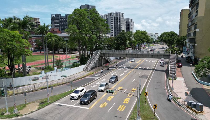 道工處補充說,天橋西側相鄰的舊中山國小(原址改建鼓山運動中心、幼兒及長照園區),亦正進行外圍人行環境改造中,包含鋪面翻新、 綠帶整理、路口動線與無障礙設施調整等完工後將提供更為開闊舒適的街景空間。