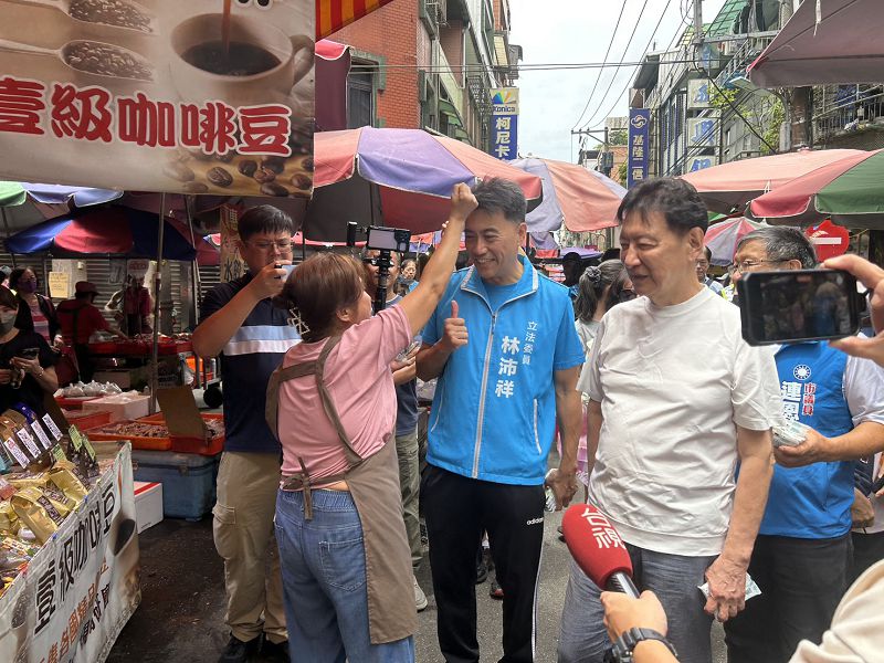 【記者江宏志基隆報導】基隆市立法委員林沛祥罷免案,將在7月26日週末投票,林沛祥邀中廣前董事長趙少康一起到七堵南興市場掃街,在暖暖區市議員連恩典陪同下,最後數天加強力道宣傳不同意罷免。