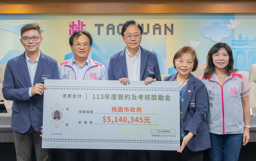 【記者吳艾芸桃園報導】桃園市長張善政日前主持市政會議,接受財政局呈獻榮獲財政部「113年度促參績優及簽約獎勵金」。