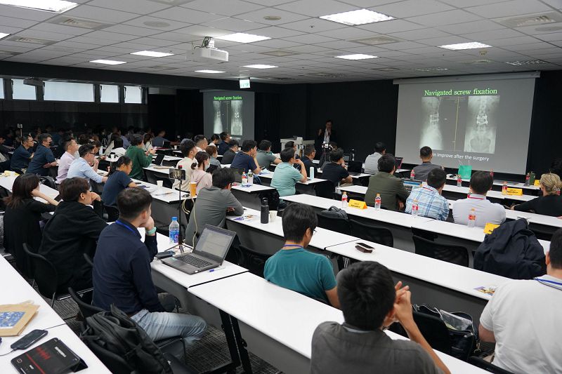 美國UCLA的Dr. George Chang-Chien則聚焦透視導引操作技巧,補足醫師在精準定位與劑量控制的實務訣竅。整日課程內容理論與操作兼備、臨床與科學並重。課程後續將移師彰濱秀傳亞洲遠距微創手術中心,展開兩天涵蓋四大核心操作模組的實作訓練,包括「雙影像導引脊椎治療」、「超音波導引脊椎治療」、「超音波導引肌肉骨骼治療」與「內視鏡脊椎手術」,讓學員在專業引導下,實地操練臨床常見處置技術,強化手術精準度與操作信心。